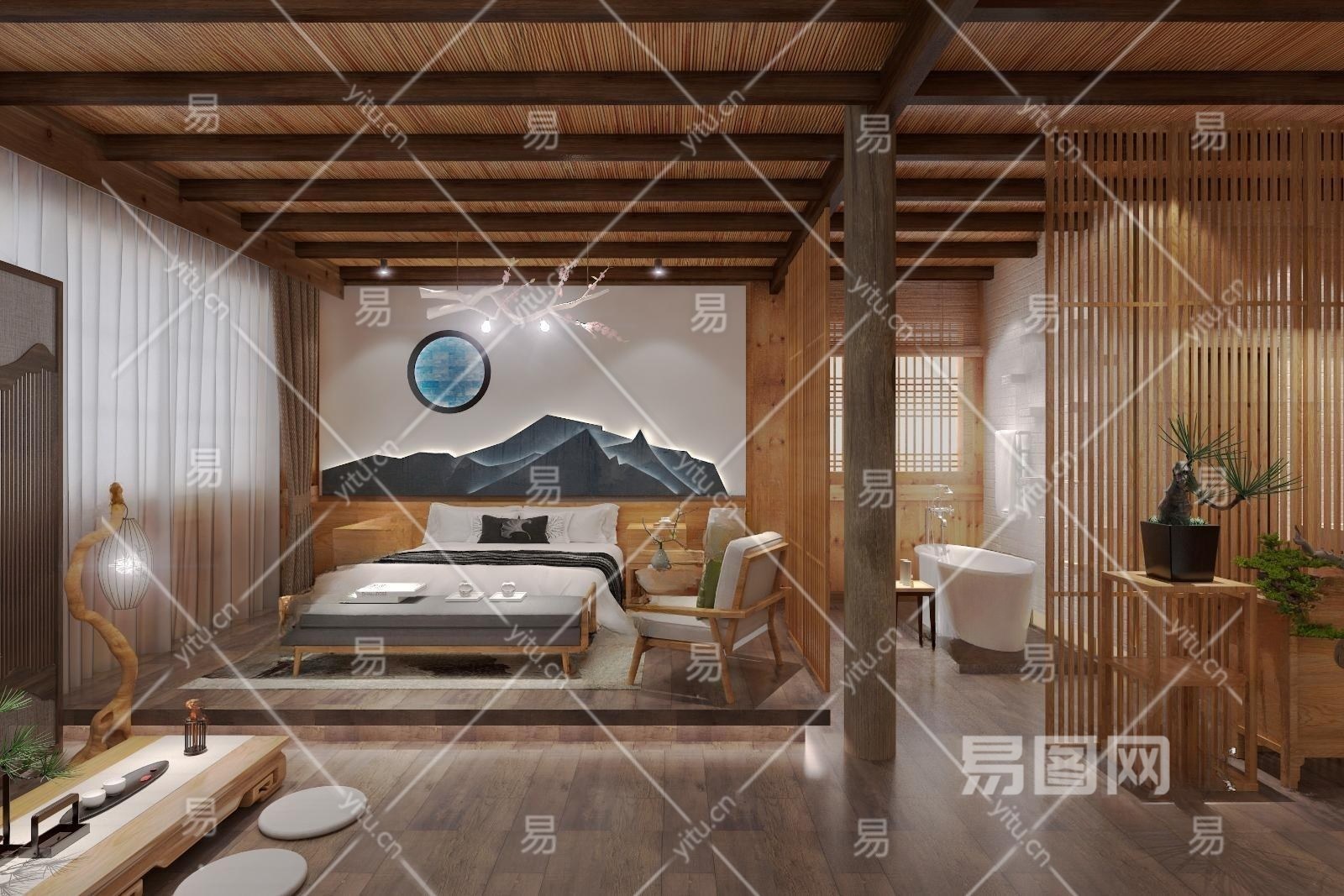 禅意中式民宿客房原创模型3D模型下载