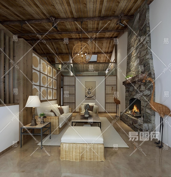 侘寂民宿客厅3D模型下载