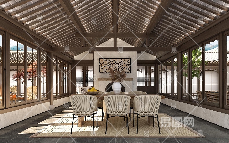 当前的位置:首页 > 3D模型 > 酒店空间 > 民宿 > 新中式自然风民宿餐厅3D模型下载
