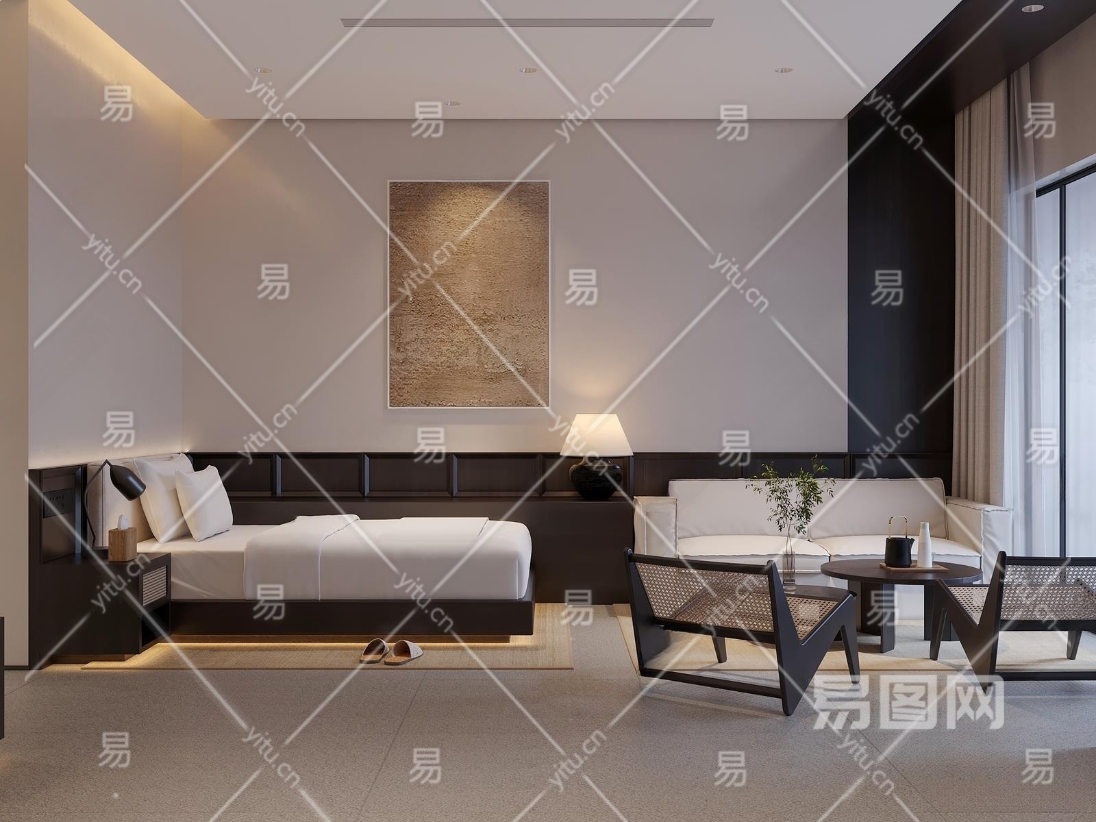 侘寂风民宿标间3D模型下载