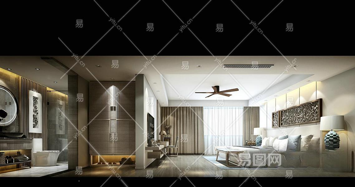 当前的位置:首页 > 3D模型 > 酒店空间 > 民宿 > 新中式民宿 双人床 风扇灯 装饰挂件 床头柜
