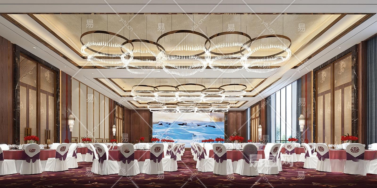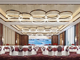 新中式酒店宴会厅3D模型下载