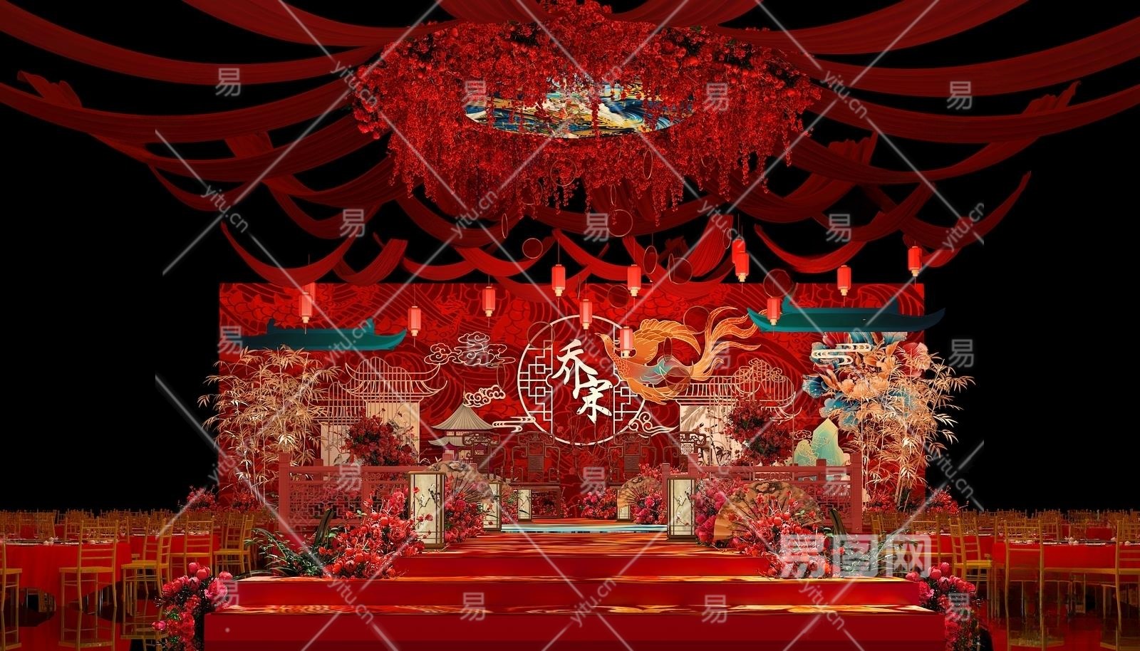 新中式酒店婚礼宴会厅3D模型下载