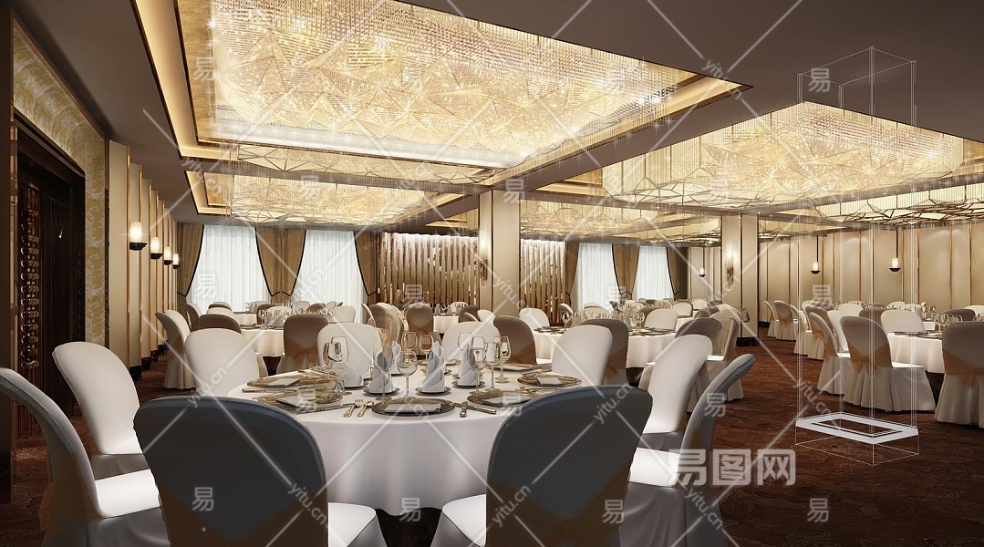 现代宴会厅3D模型下载