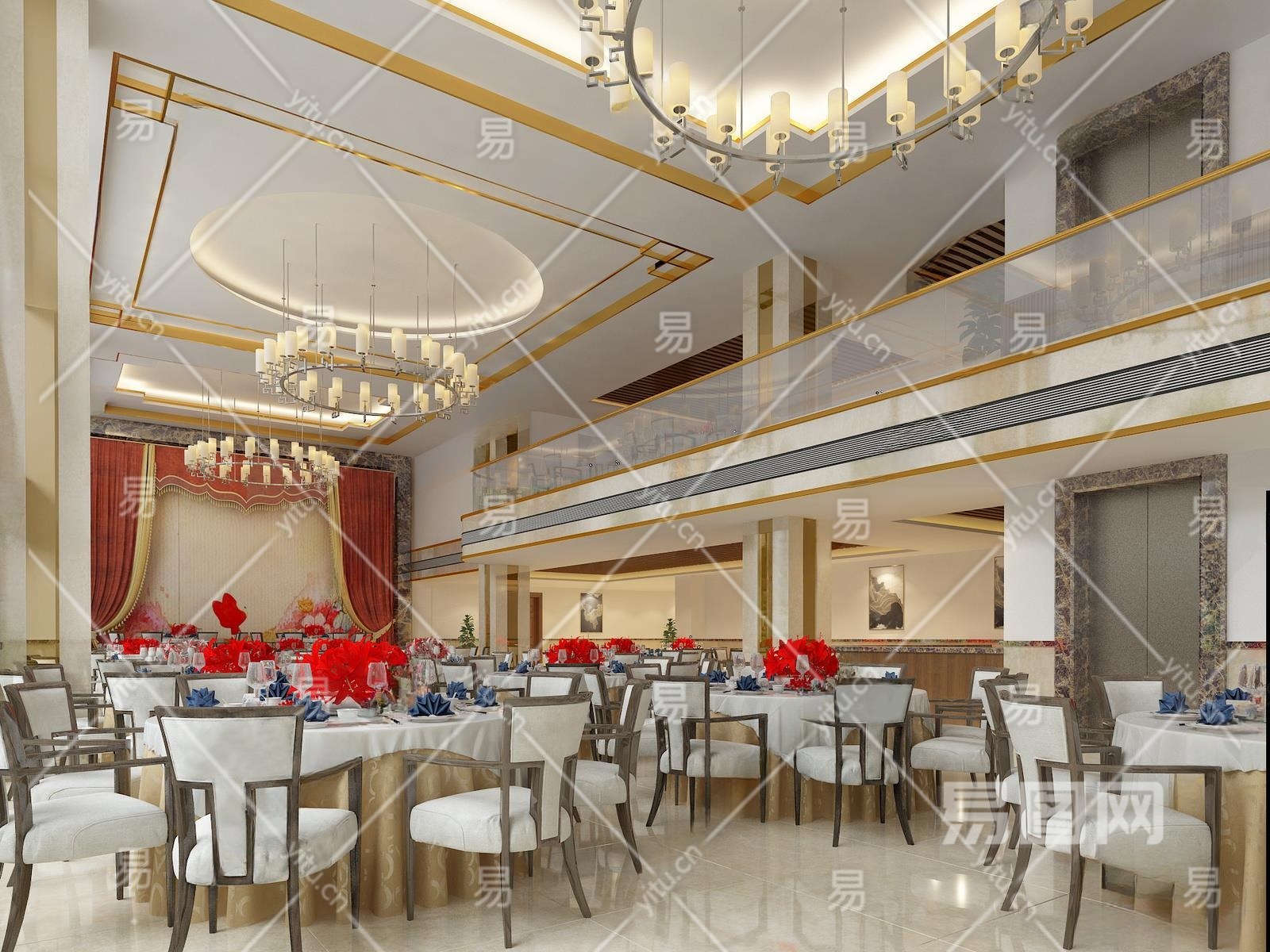 新中式酒店宴会厅3D模型下载