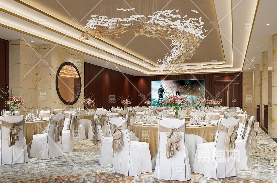 新中式酒店宴会厅3D模型下载