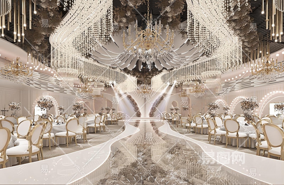 现代婚礼宴会厅3D模型下载