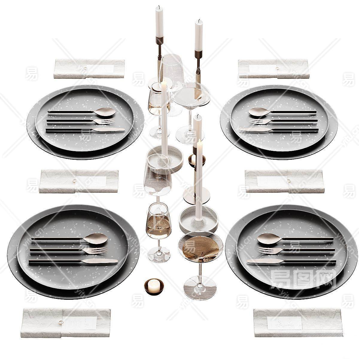 现代餐厅摆件 餐具 餐盘 餐具组合 餐桌摆件