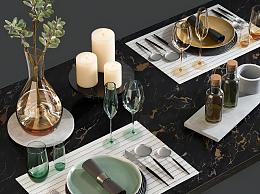 现代轻奢餐具组合 盘子 酒杯 花瓶 饰品 摆件 蜡烛