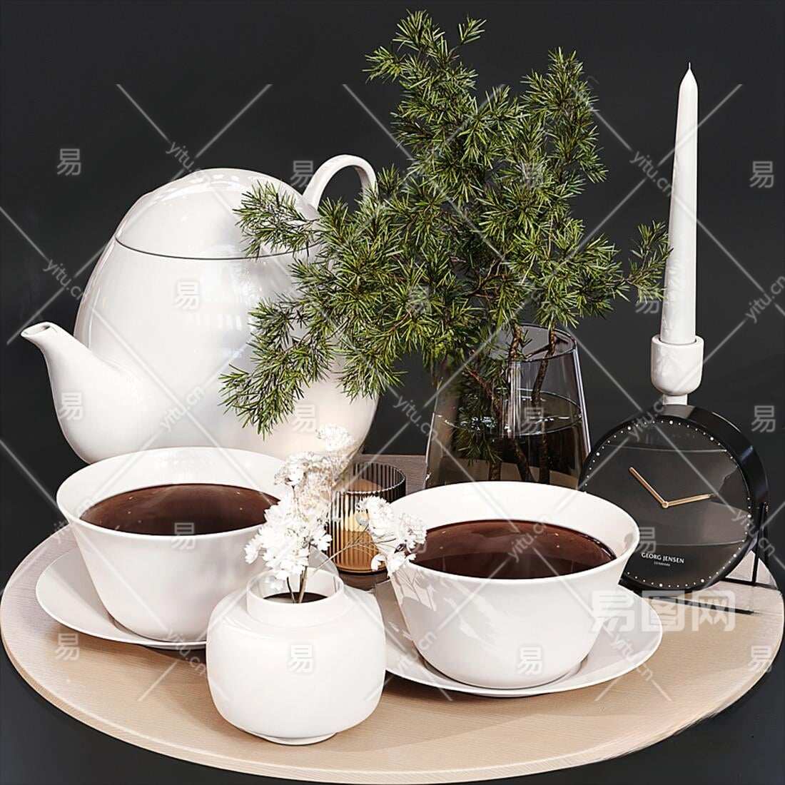 现代餐具组合3D模型下载