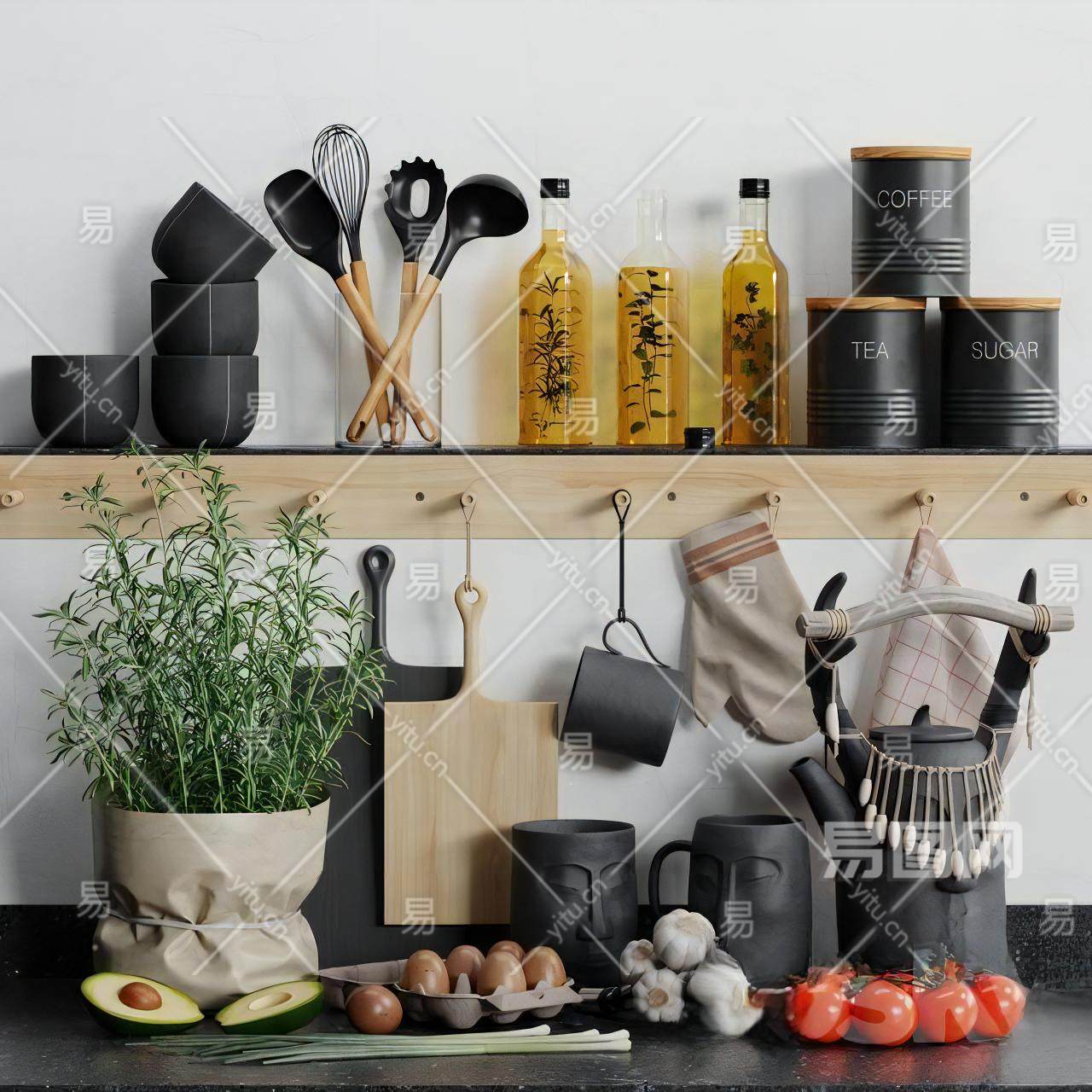 当前的位置:首页 > 3D模型 > 厨卫用品 > 厨房用品组合 > 现代厨房用品组合 厨具 摆件 餐具