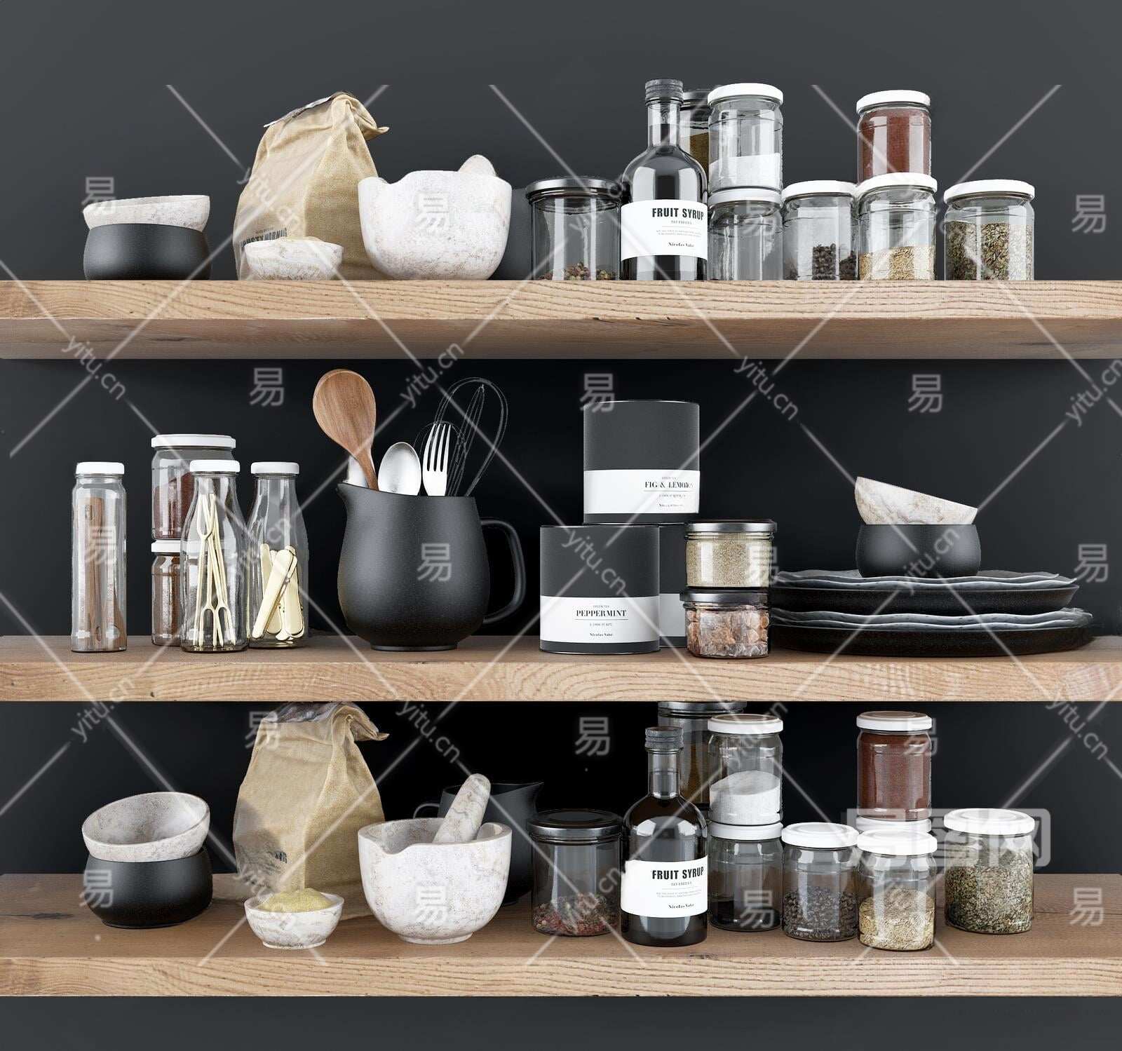 现代厨房用品组合3D模型下载