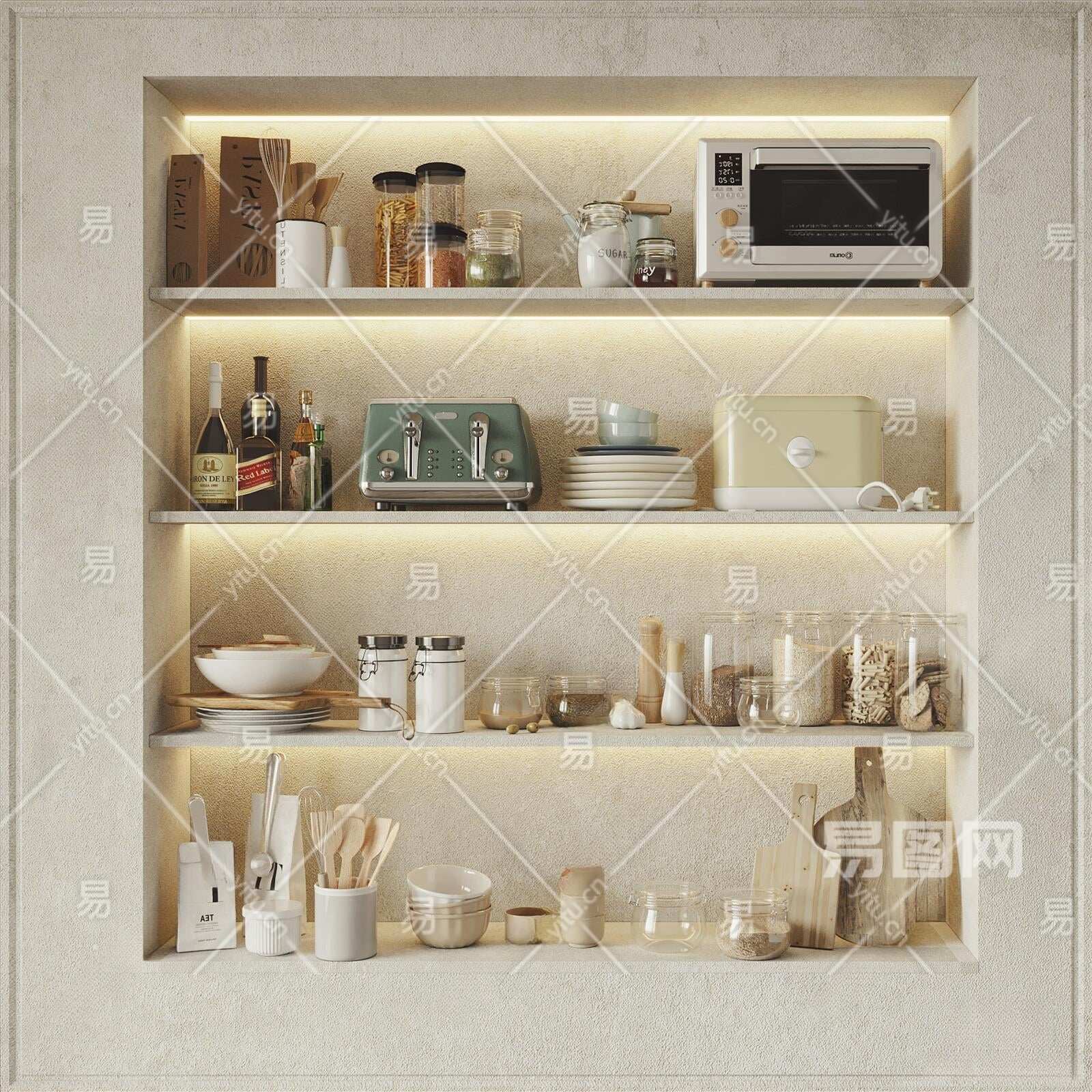 现代厨房用品组合3D模型下载