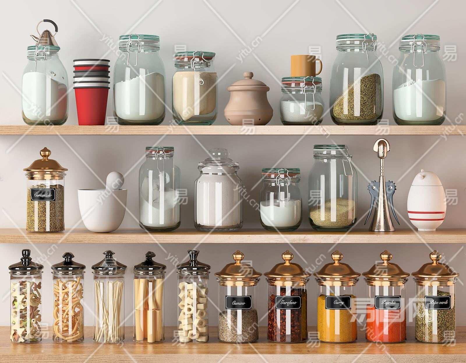 现代厨房用品组合3D模型下载