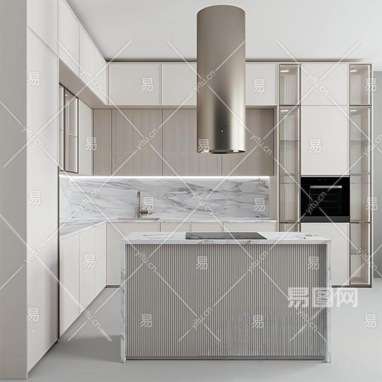 现代厨柜组合 中岛台