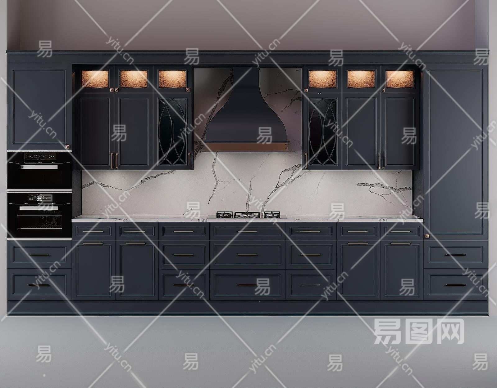 美式橱柜组合3D模型下载