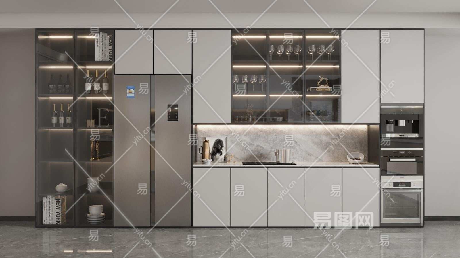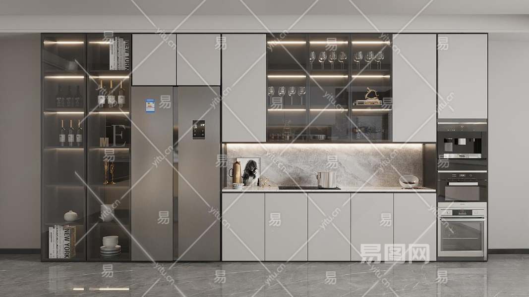 现代橱柜组合3D模型下载