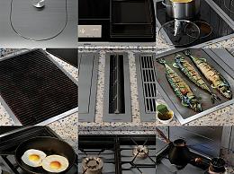 现代厨房用品组合 灶台 食物鱼 锅