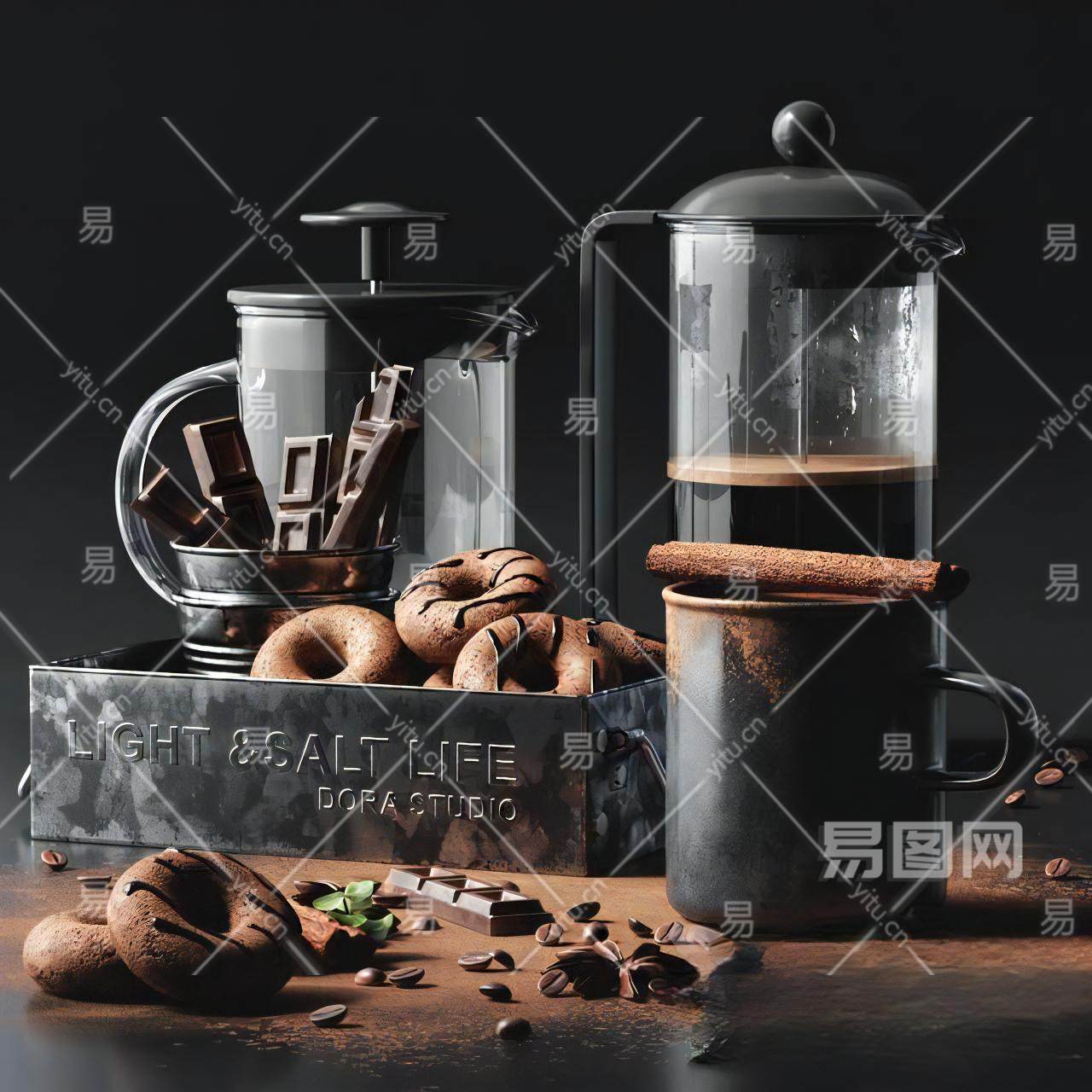 现代咖啡机 咖啡壶 巧克力 食物摆件 餐厅食物
