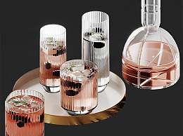 现代酒瓶酒杯组合3D模型下载