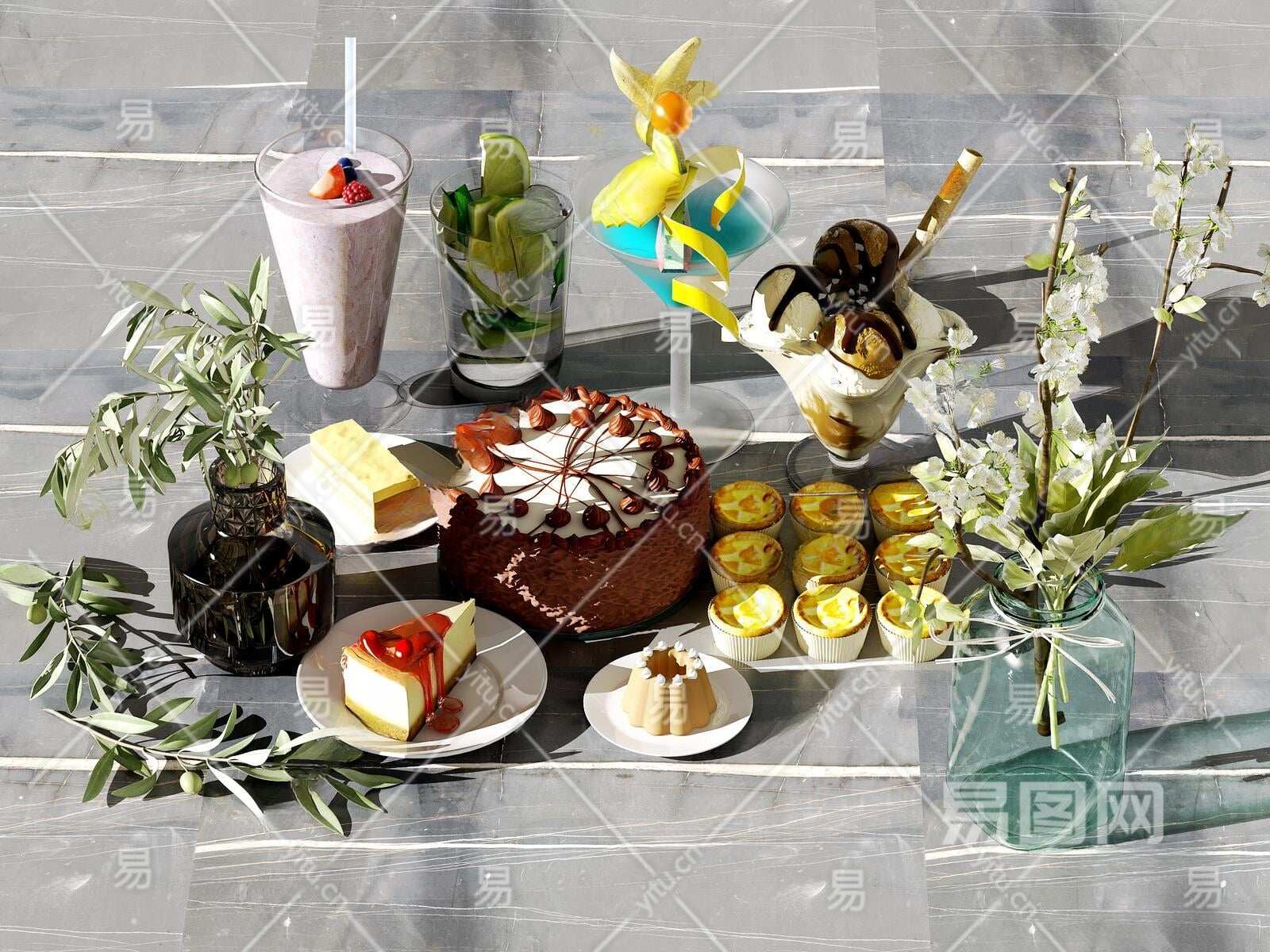现代食物饮料3D模型下载