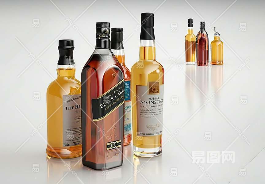 现代酒水组合3D模型下载