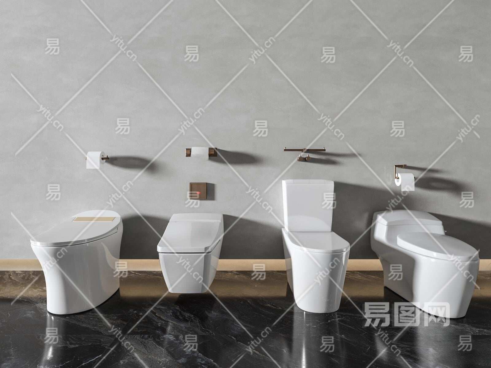 现代马桶组合3D模型下载