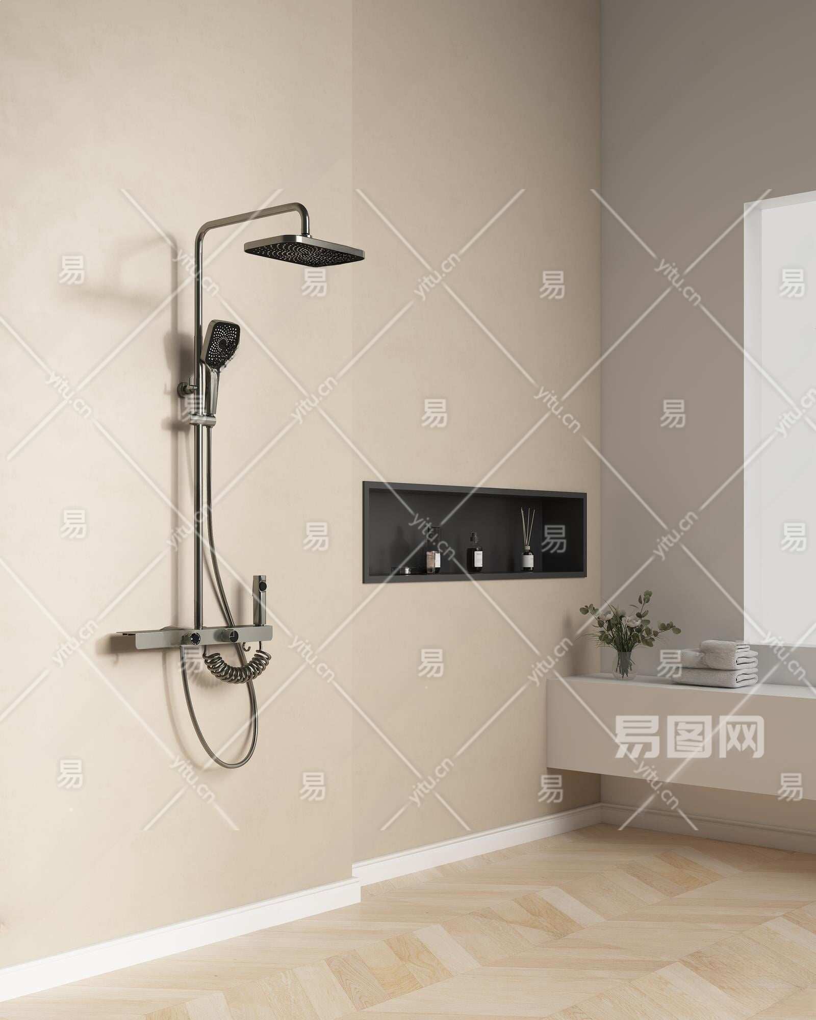 银灰色花洒3D模型下载
