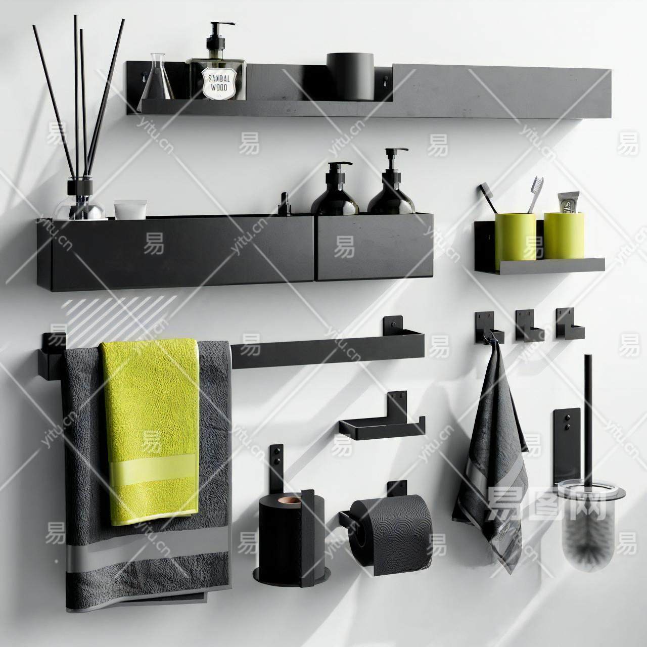 当前的位置:首页 > 3D模型 > 厨卫用品 > 洗浴用品 > 现代卫生间五金挂架 毛巾架 化妆品 沐浴露