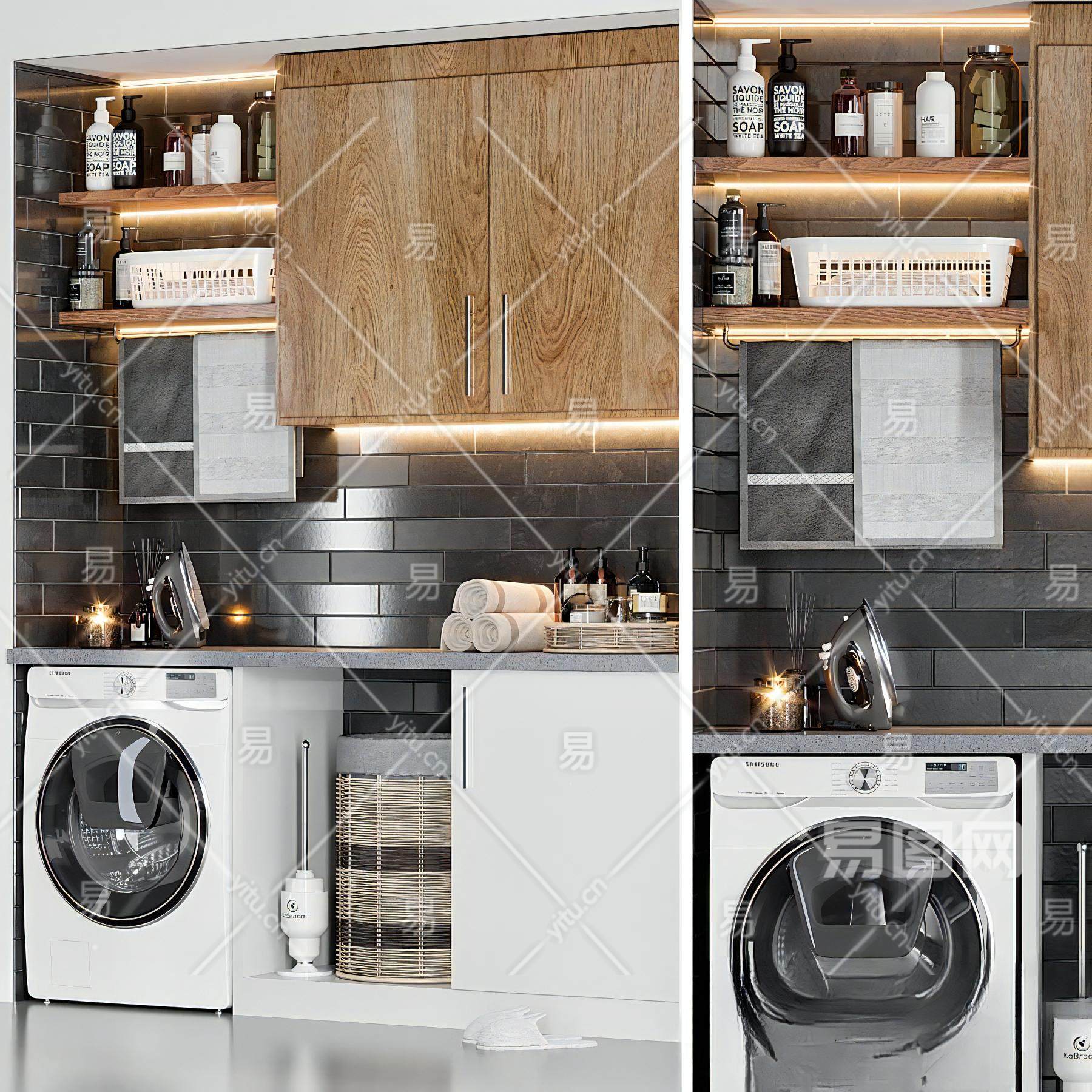 现代浴室柜洗衣机柜