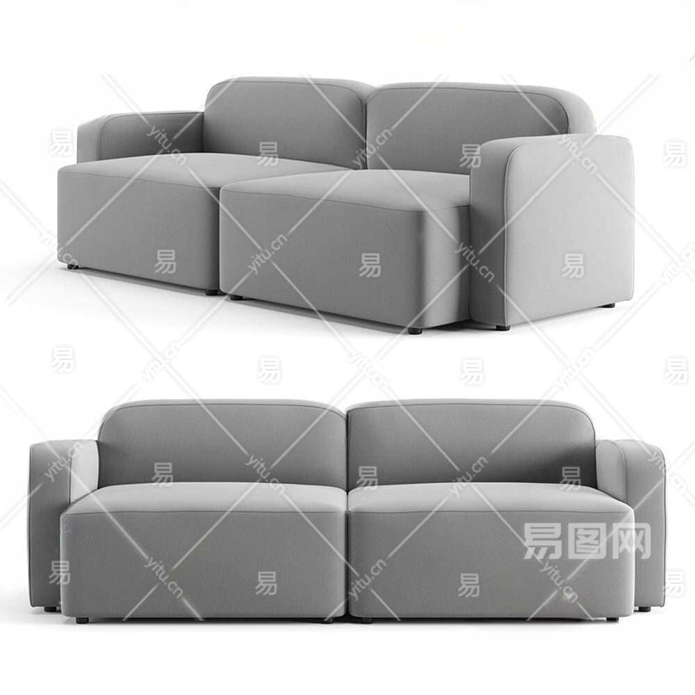 现代双人布艺沙发3D模型下载