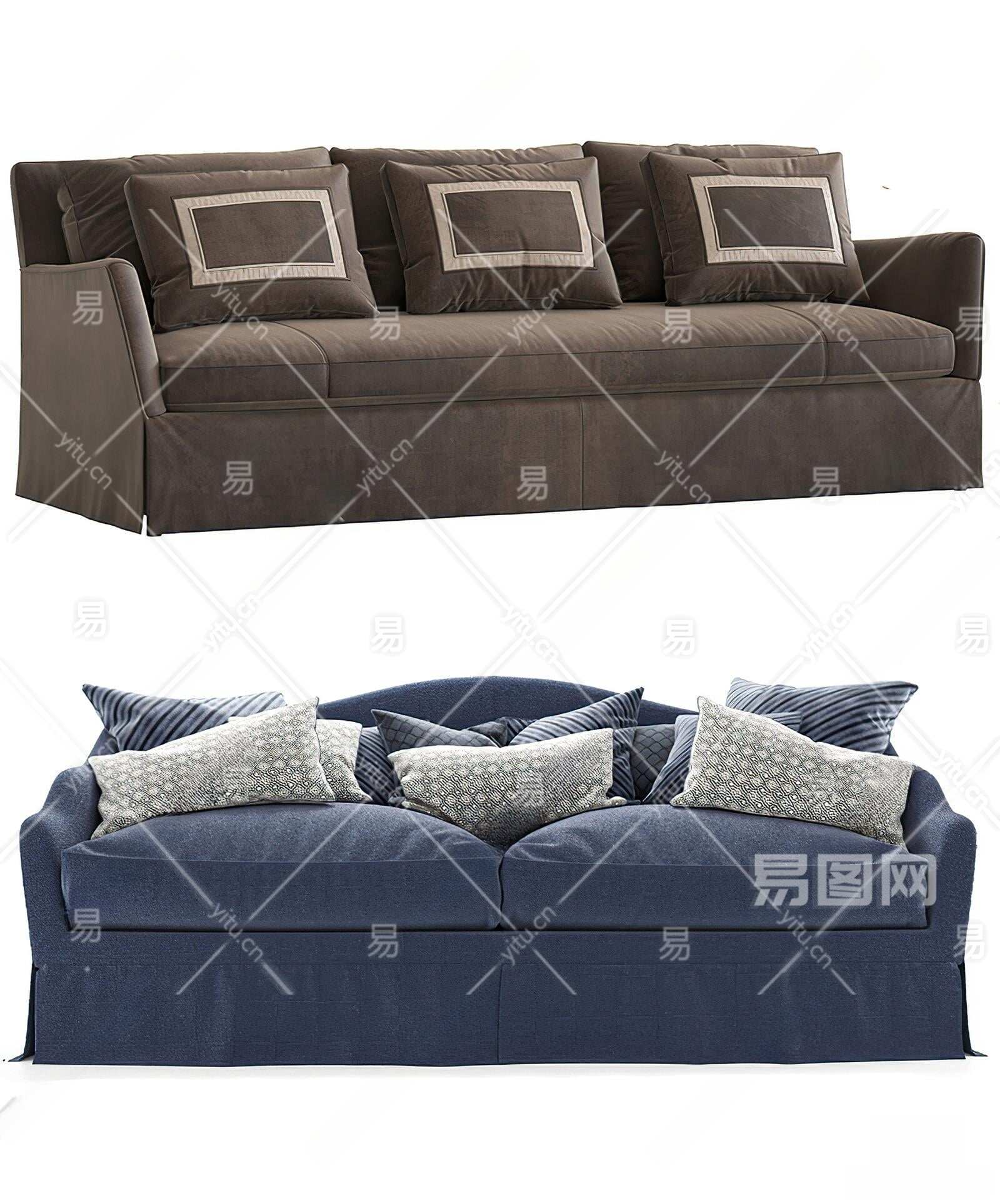 简欧双人沙发3D模型下载