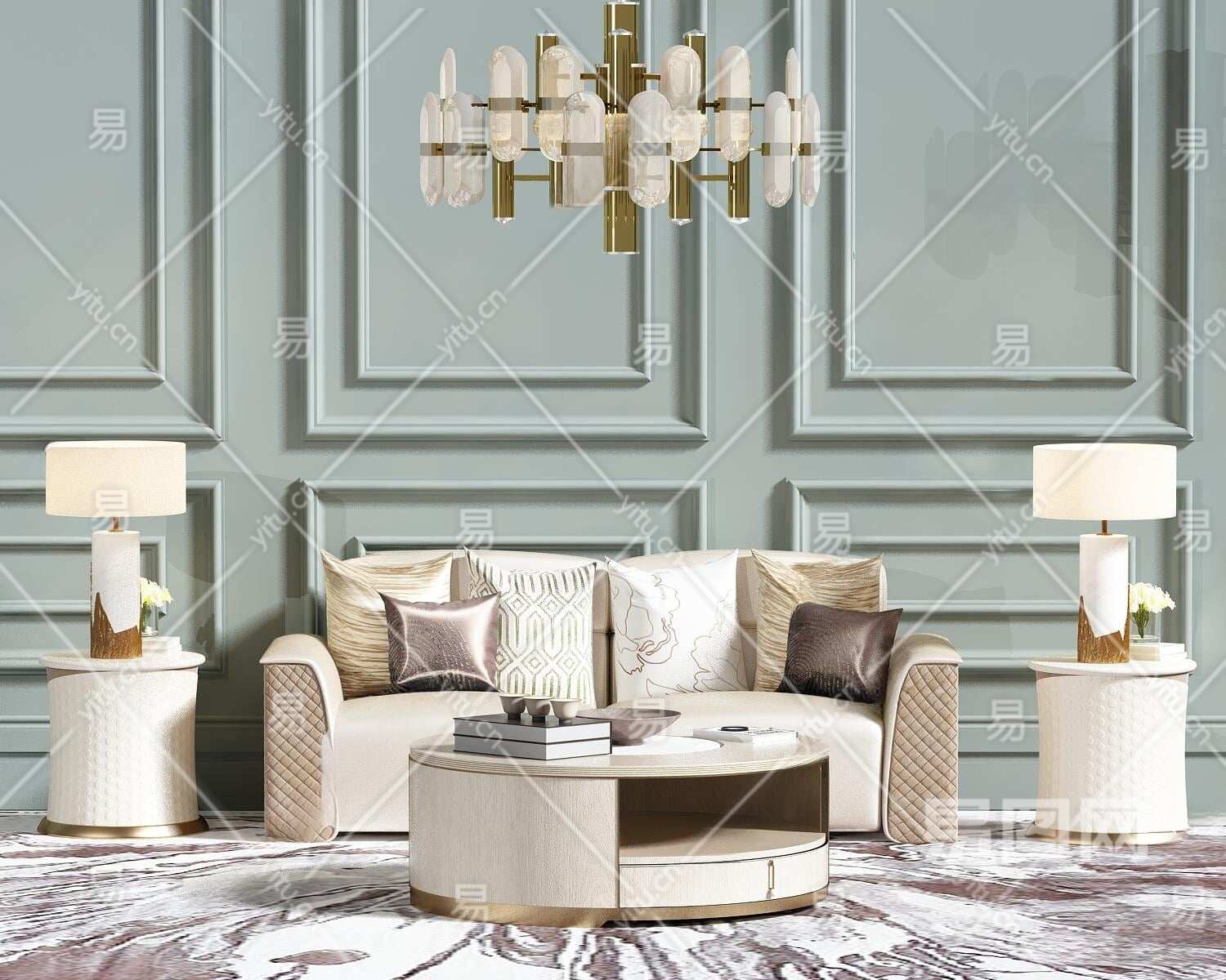 材质VR材质 贴图有贴图 灯光VR灯光 风格简欧