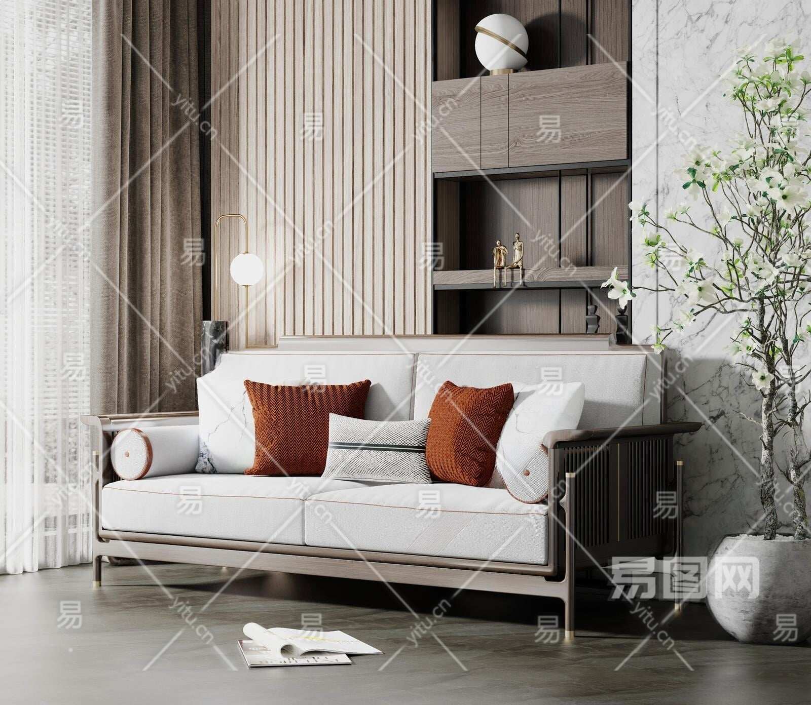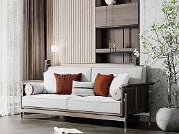 新中式双人沙发3D模型下载