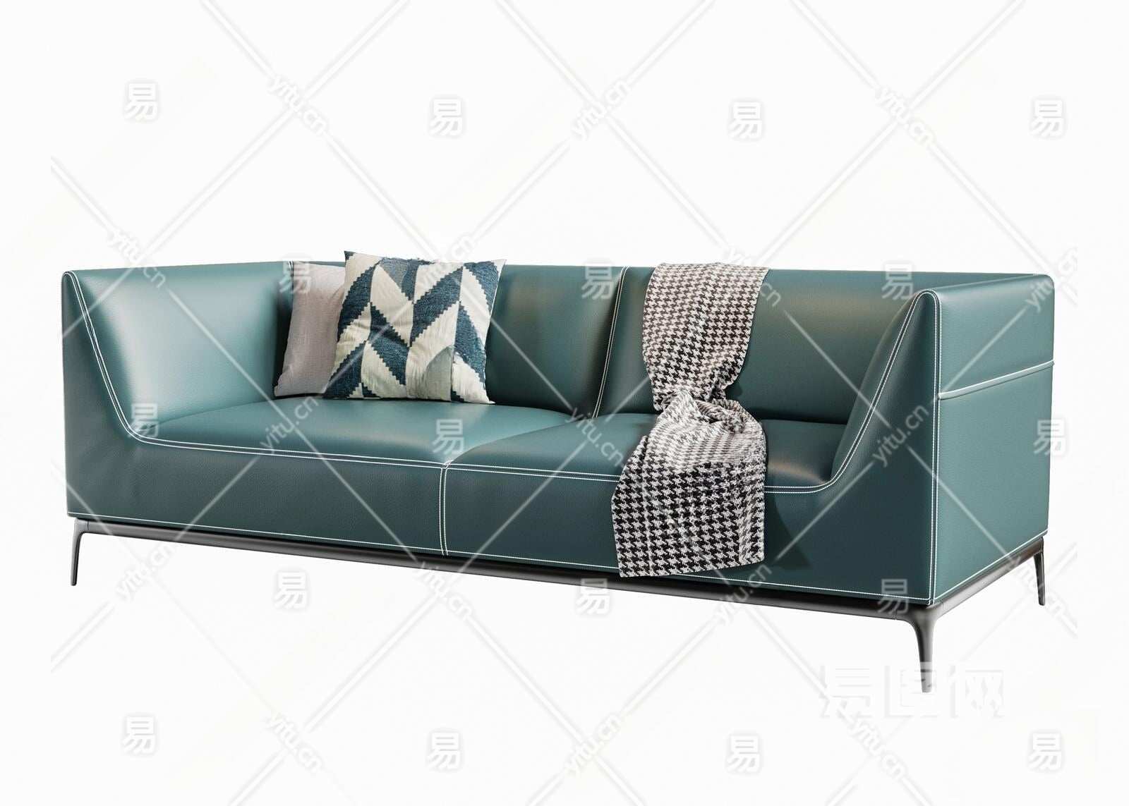 现代皮革双人沙发3D模型下载