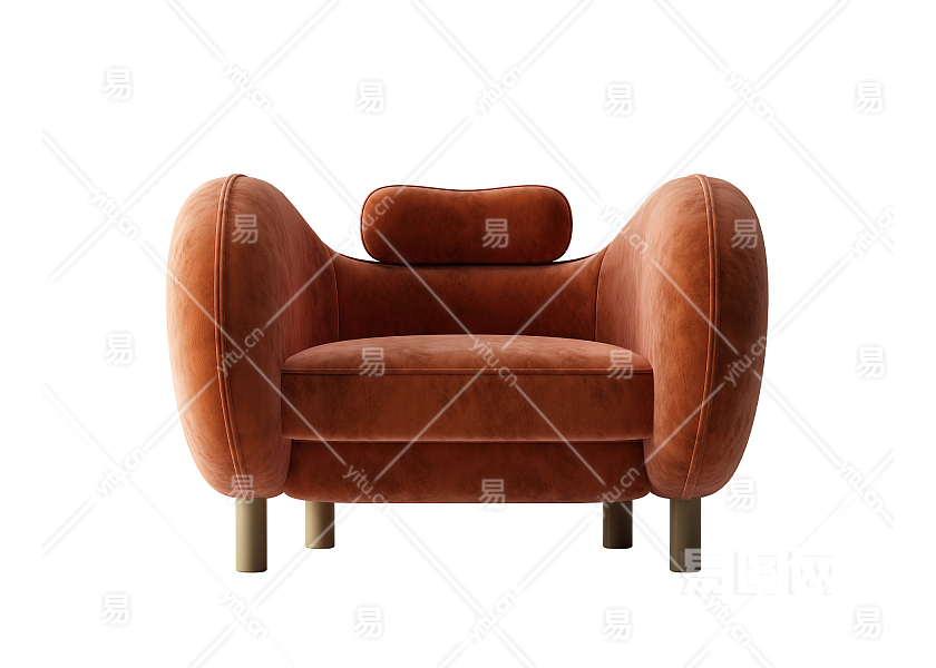 现代红色绒布单人沙发