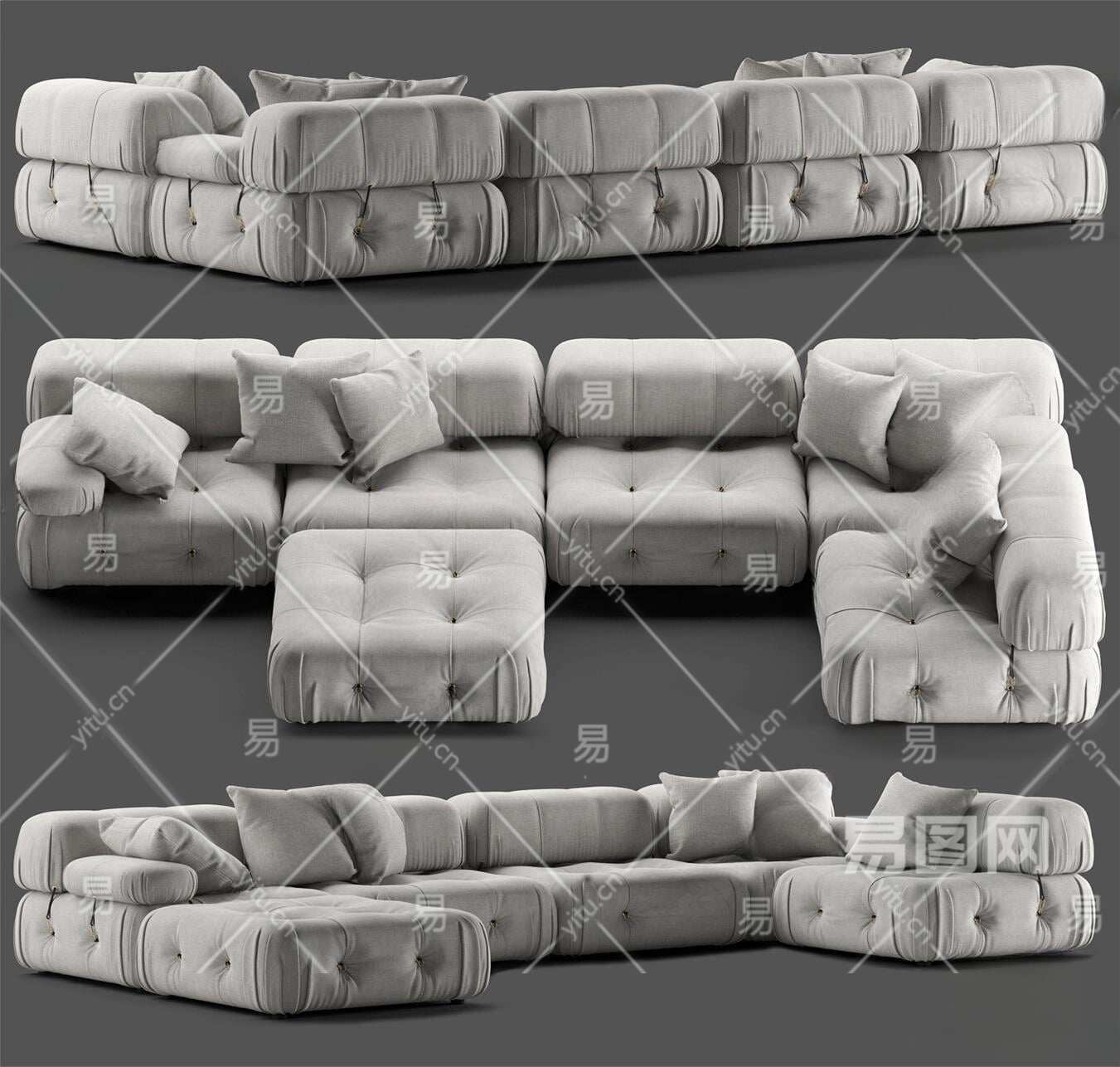 现代多人沙发3D模型下载