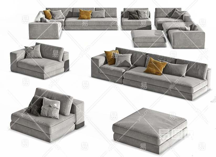 现代组合沙发3D模型下载