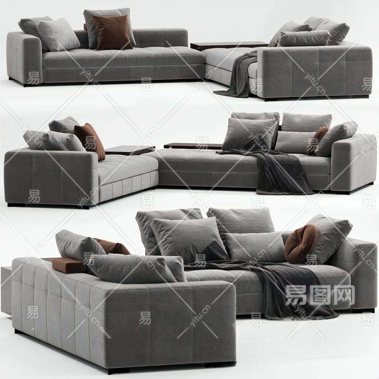 意大利米洛提MINOTTI现代多人沙发 L型沙发 转角沙发 抱枕 毯子