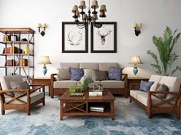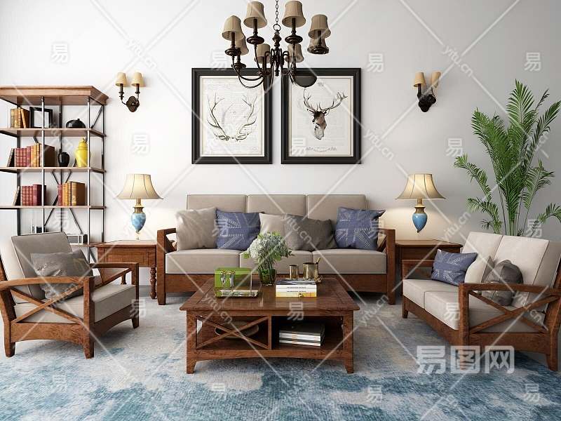 美式沙发茶几装饰画吊灯地毯组合3D模型下载
