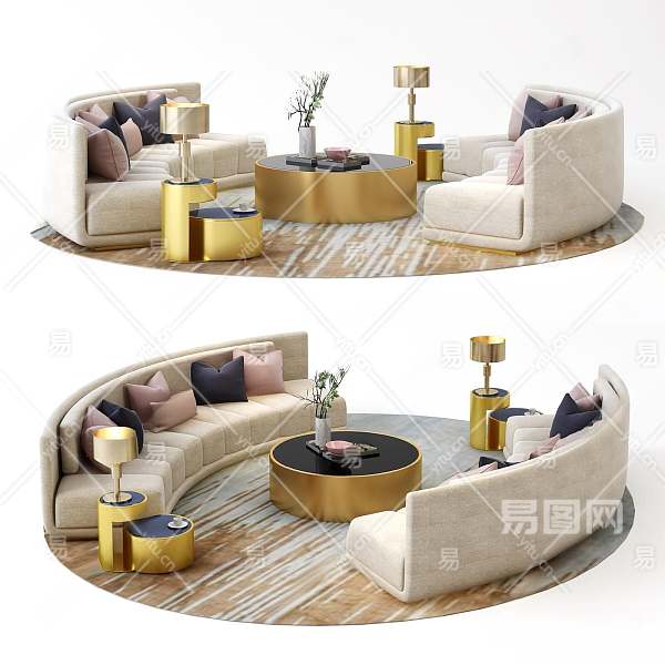 现代沙发茶几组合3D模型下载