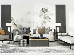 新中式沙发茶几组合3D模型下载