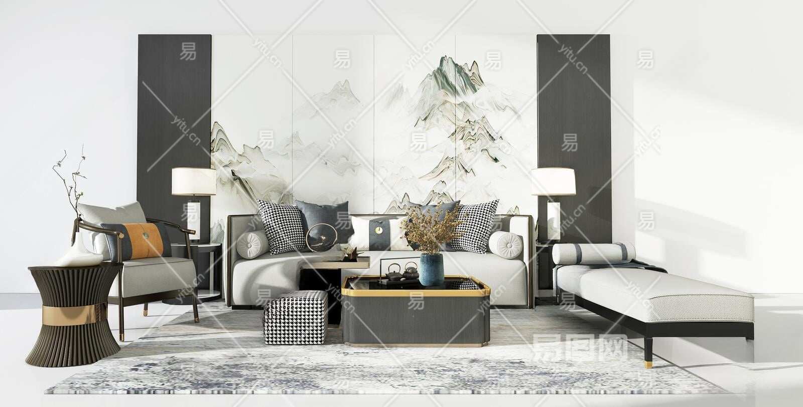 当前的位置:首页 > 3D模型 > 沙发 > 沙发茶几组合 > 新中式沙发茶几组合3D模型下载