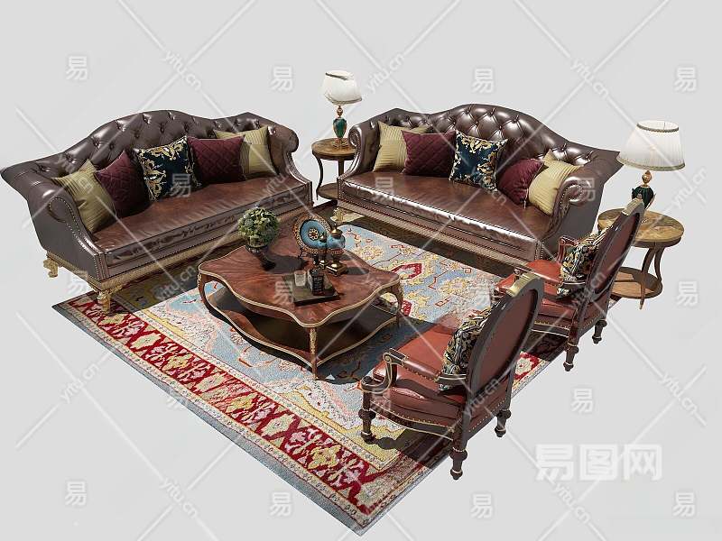 美式沙发茶几组合3D模型下载