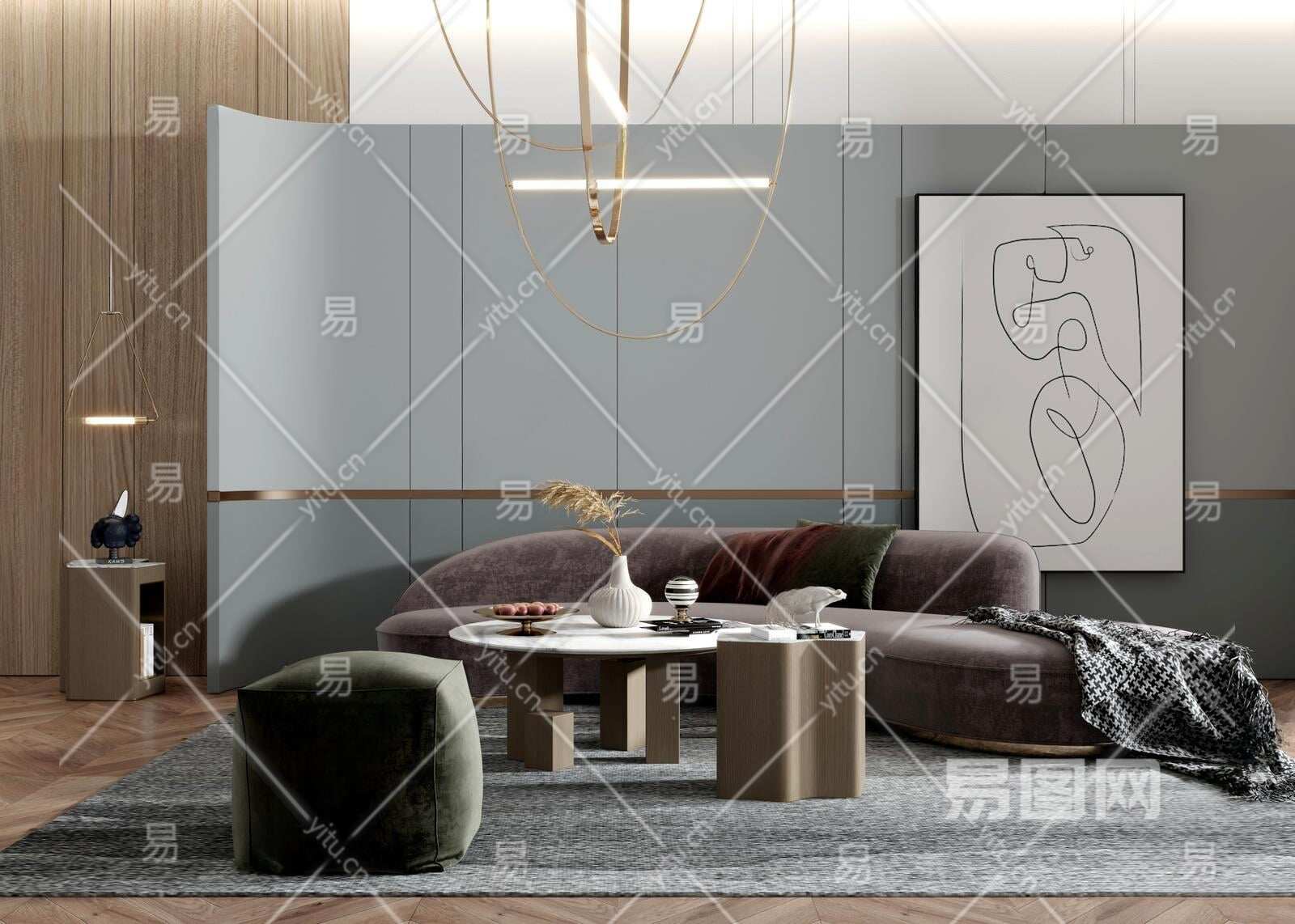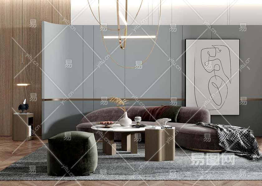 现代沙发茶几组合3D模型下载