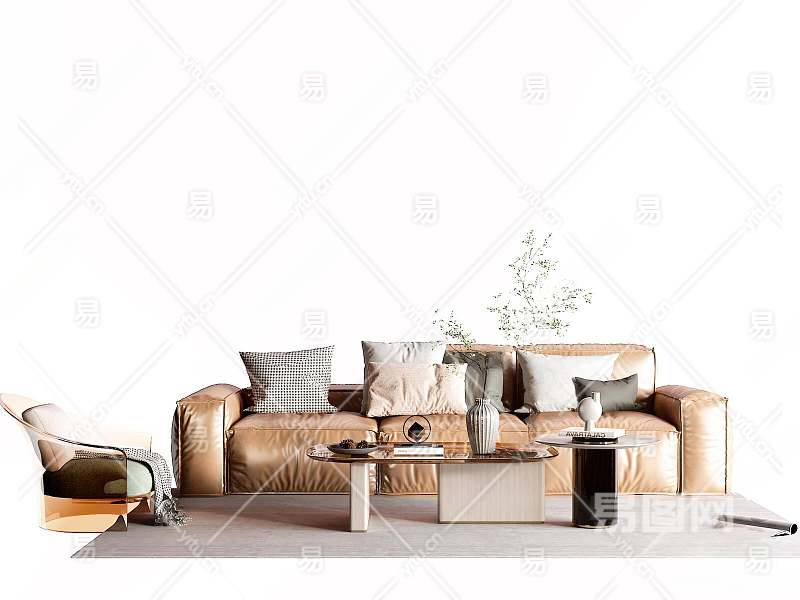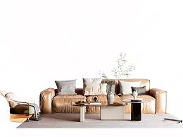 现代皮革沙发茶几组合3D模型下载