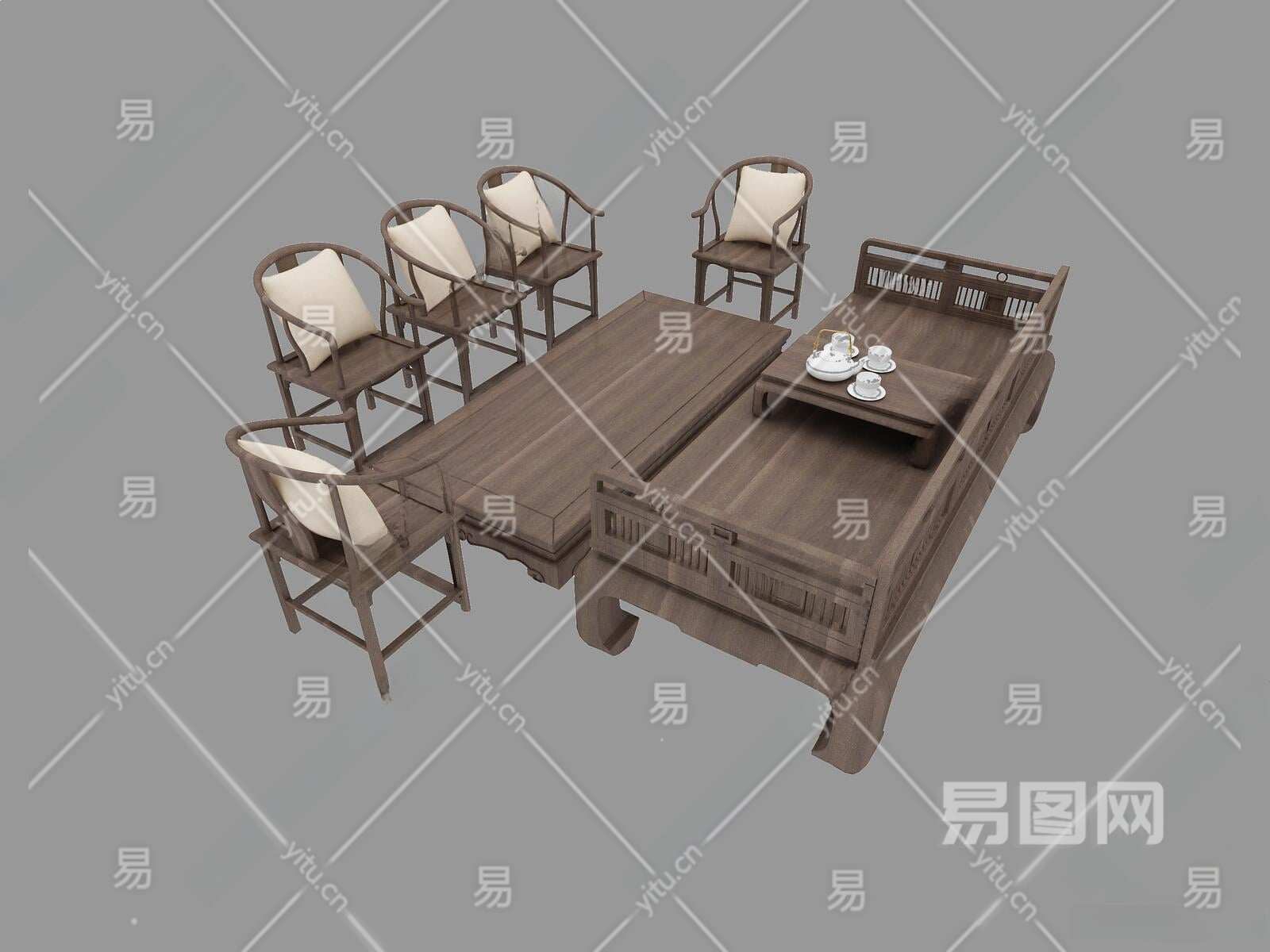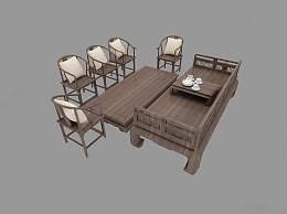 中式沙发茶几组合3D模型下载