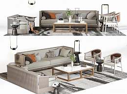 新中式沙发茶几组合3D模型下载