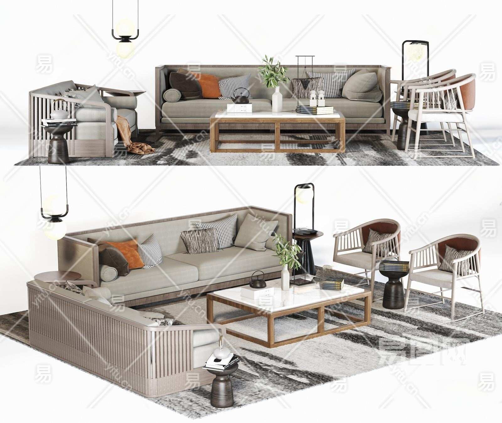 当前的位置:首页 > 3D模型 > 沙发 > 沙发茶几组合 > 新中式沙发茶几组合3D模型下载