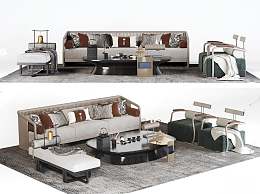 新中式沙发茶几组合3D模型下载